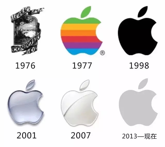 從1976年牛頓通過蘋果發(fā)現(xiàn)萬有引力的圖像,到1977年開始一直使用被咬了一口的蘋果,從彩色logo演變?yōu)閱紊玪ogo,蘋果公司的LOGO愈趨簡單化,也正如其產(chǎn)品所遵守的極簡主義一般,簡單而美妙。